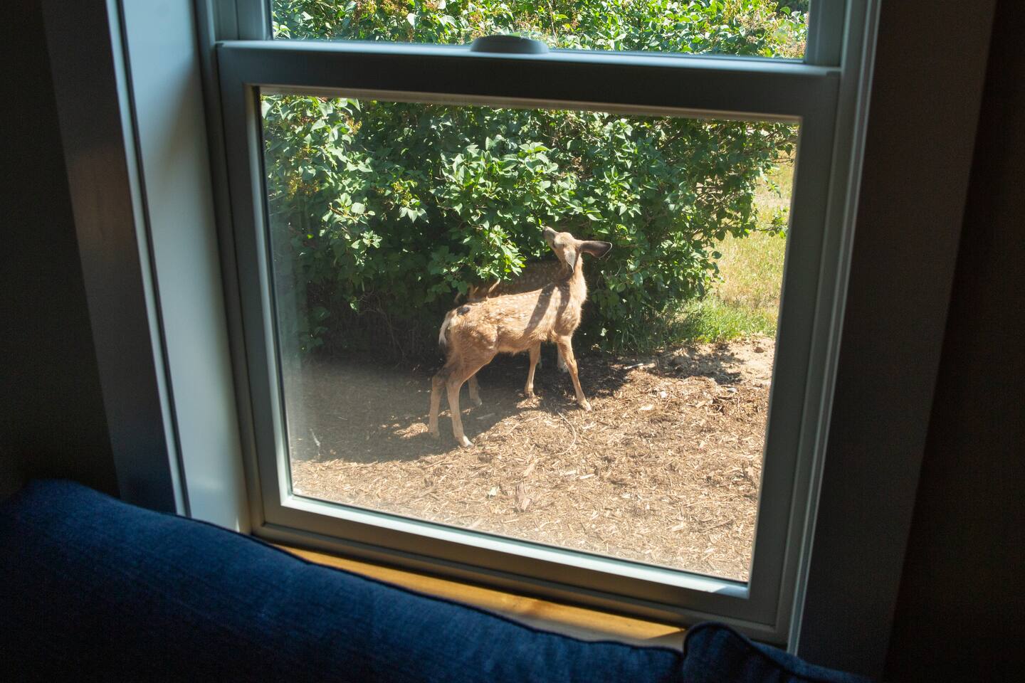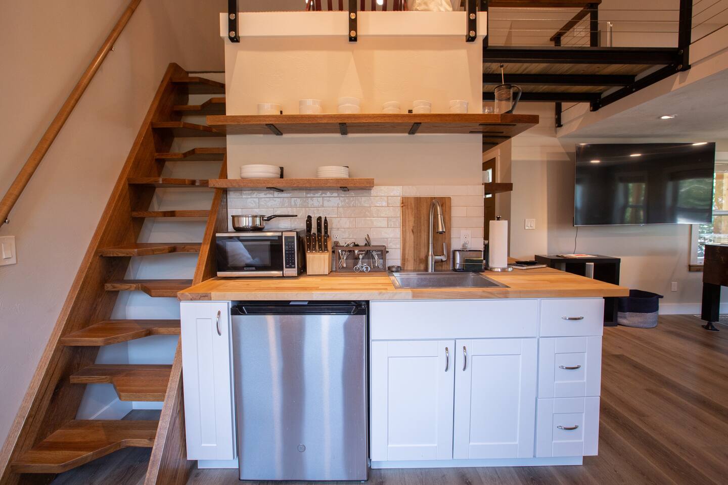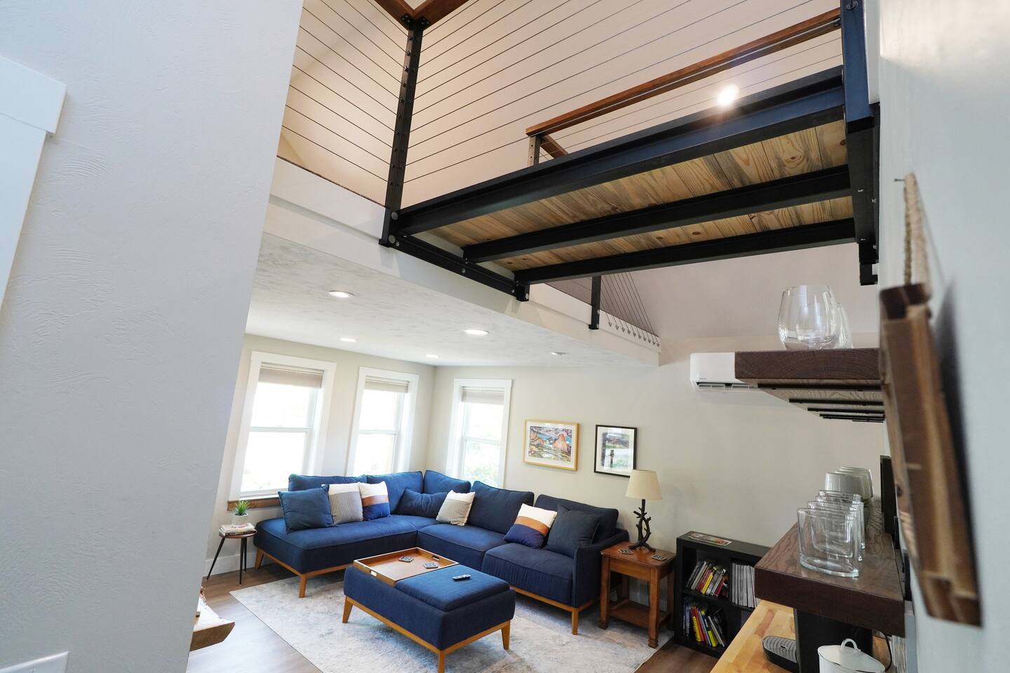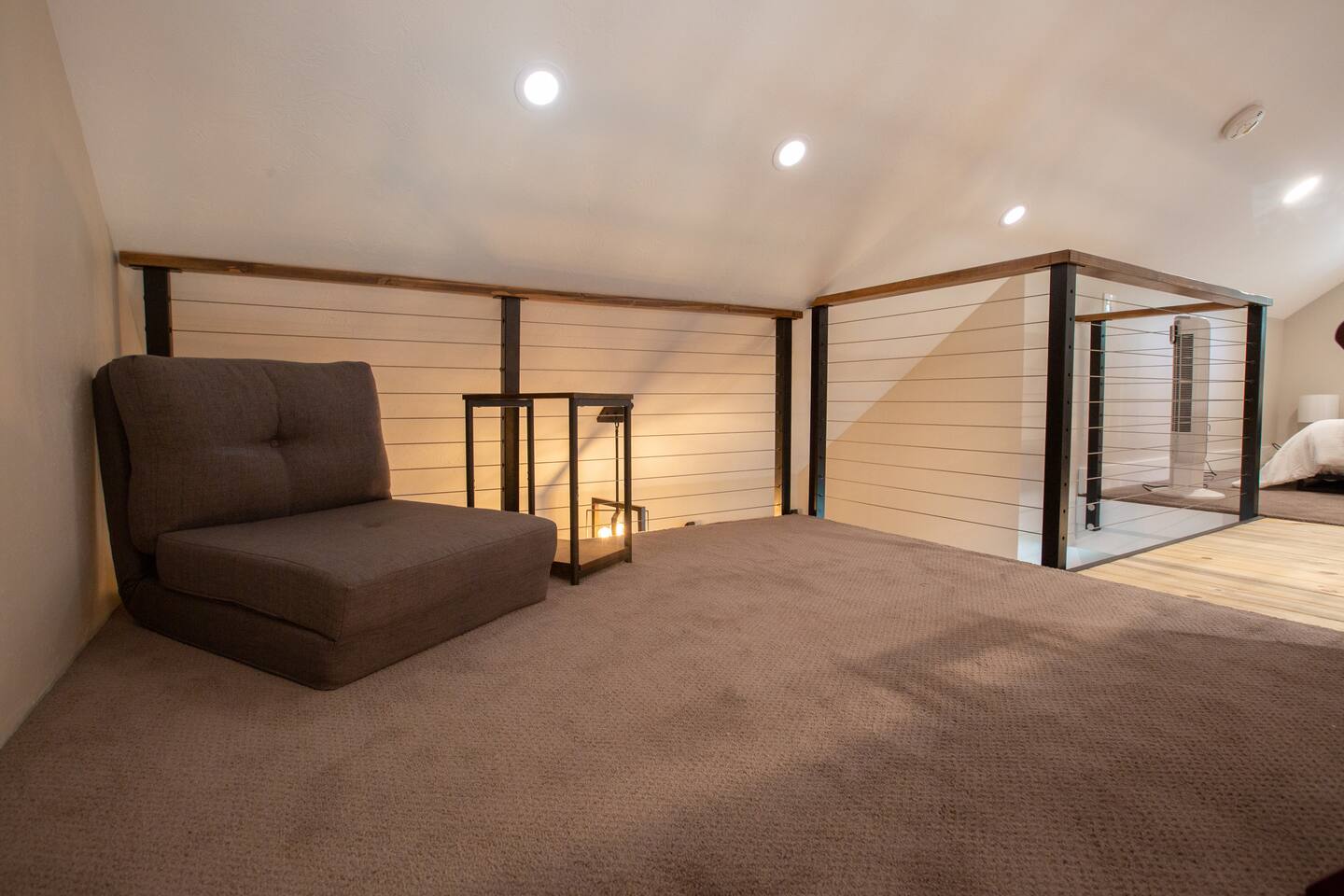 The bed in the loft requires access from a steep ladder and walking across a catwalk, so it is for the adventurous at heart.