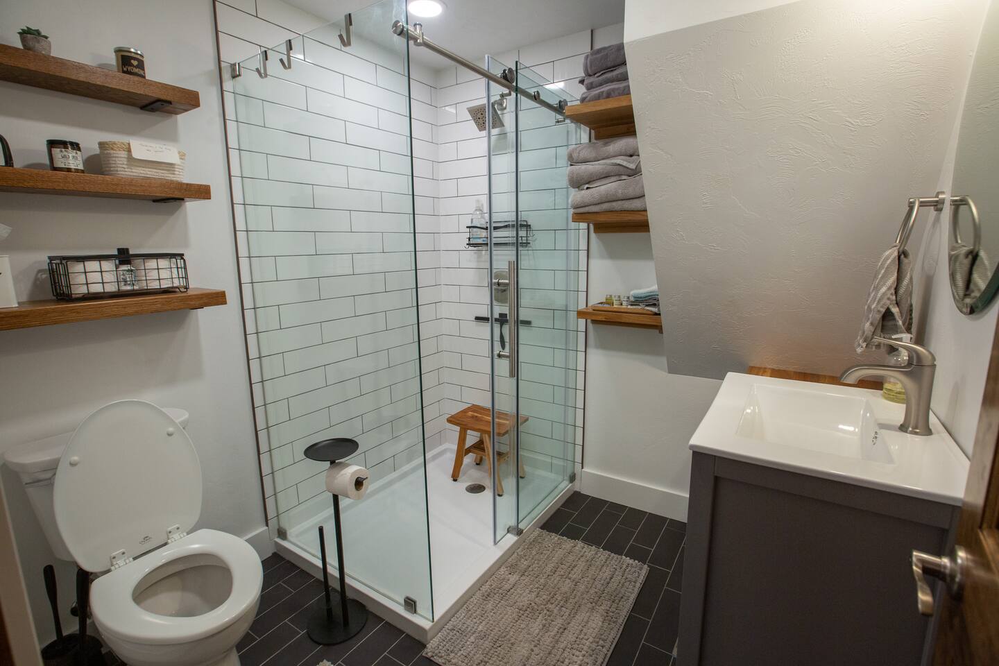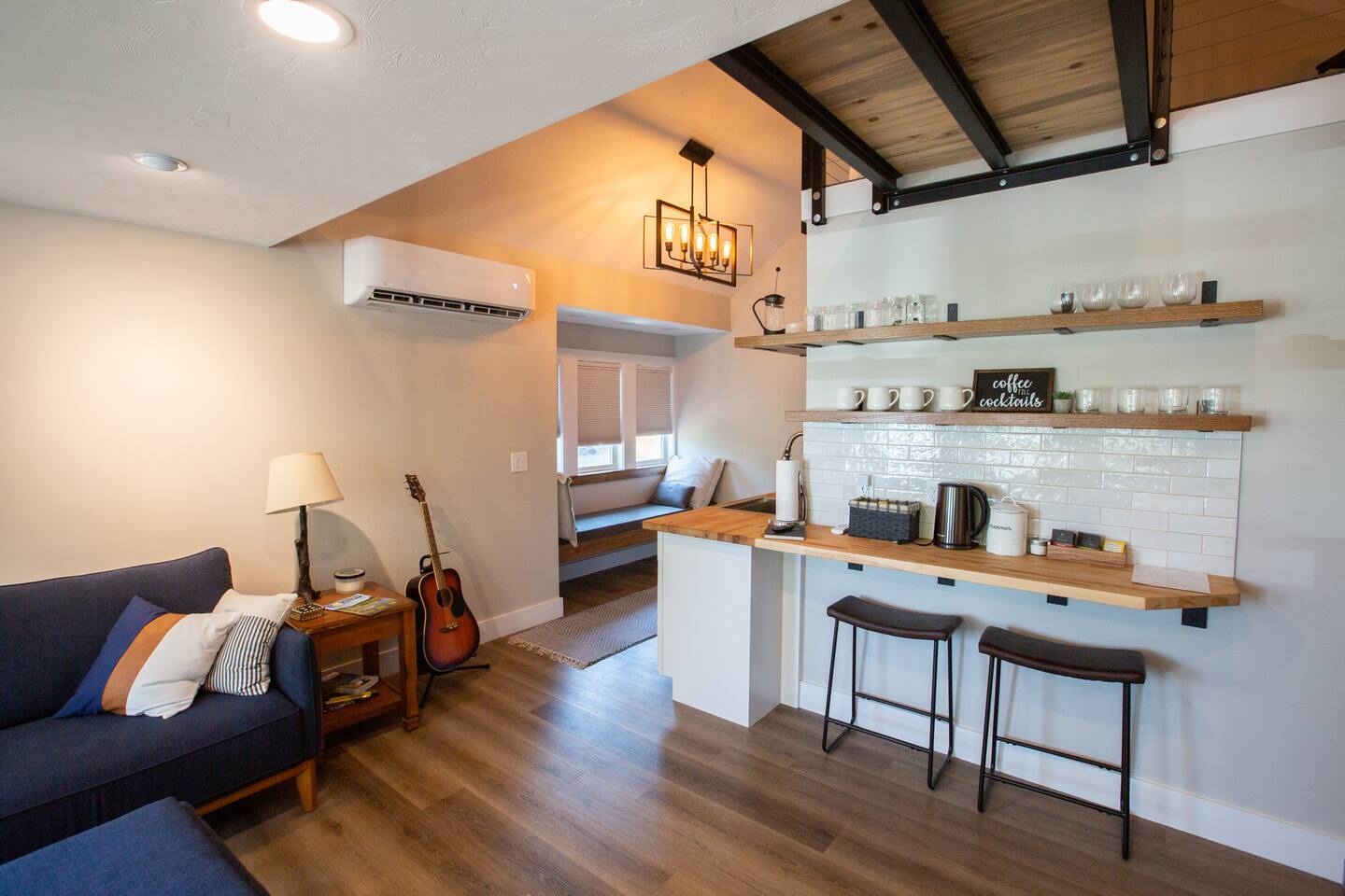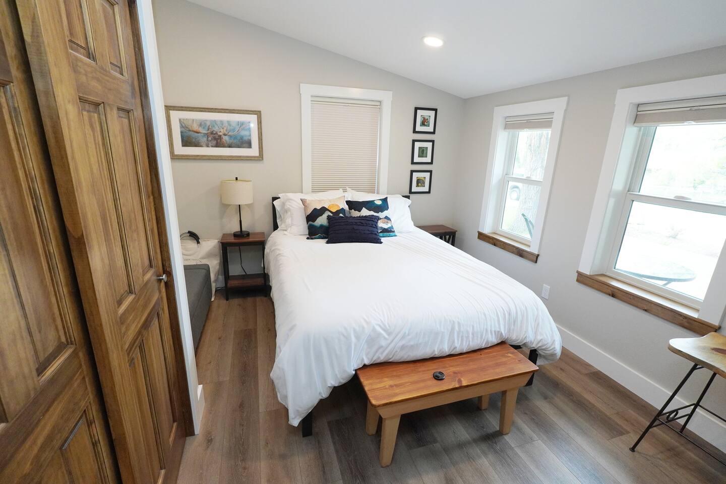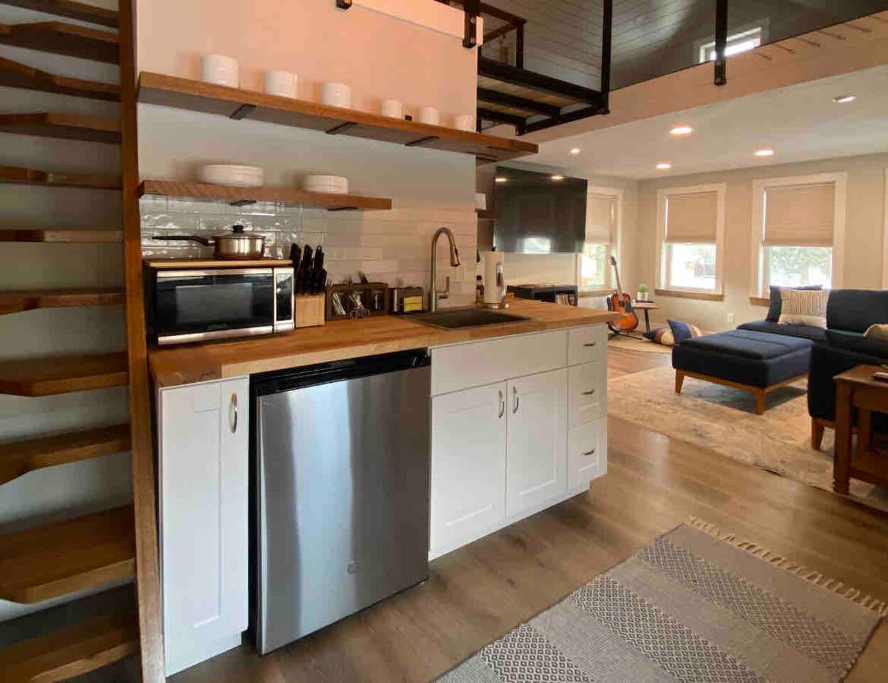 This quaint and unique space is brand new and will have you smiling your entire stay. Enjoy a queen bed downstairs and a queen bed in the loft. This is the perfect place for people on a work trip, traveling as a couple, rock climbers visiting Sinks Canyon, or for an entire a family.